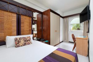 Este hotel de 4 estrellas dispone de acogedoras habitaciones, todas equipadas con aire acondicionado centralizado, TV vía satélite, escritorio y, en muchos casos, balcón con vistas a los jardines o a la piscina. Entre las instalaciones destacan una piscina al aire libre, un restaurante buffet que ofrece una variedad de platos locales e internacionales, y un bar junto a la piscina que sirve aperitivos durante el día. Los huéspedes pueden disfrutar de Wi-Fi gratuito en las zonas comunes y de un entorno natural que invita al descanso. El hotel también ofrece servicios como recepción 24 horas y entretenimiento nocturno. Los visitantes valoran positivamente la limpieza y conservación del hotel, así como la amabilidad y profesionalidad del personal, que contribuyen a una estancia agradable y confortable.